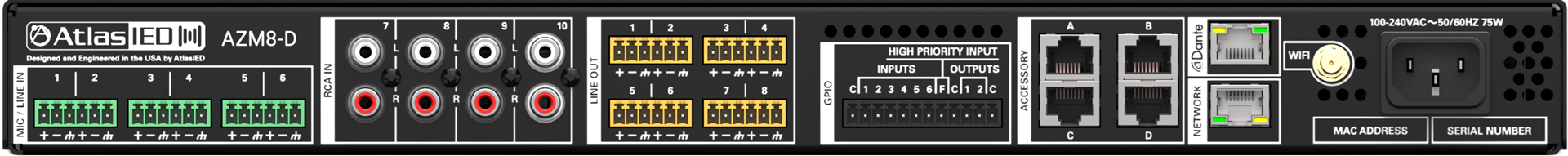 The Atmosphere AZM8-D is an 8-zone audio processor and the heart of an Atmosphere audio control system. Powerful DSP combined with innovative algorithms offer custom solutions for a wide variety of spaces. Dante networked audio provides convenient audio distribution to other Dante-enabled devices. A built-in message player, virtual wall controllers, learning ambient noise sensing, Tilter Filter™, auto-gain, GPIO, bell scheduler, room combine, and many more features, make the AZMP a processing powerhouse.​