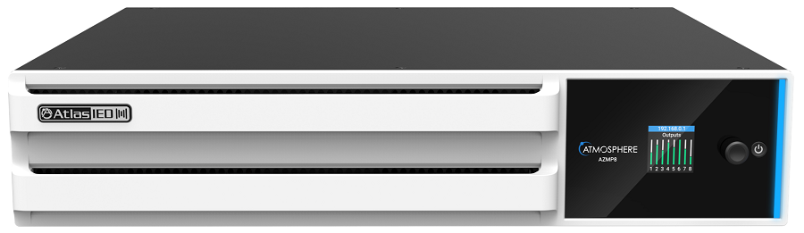 The Atmosphere AZMP8 is a powered (1200 Watt) 8-zone audio processor and the heart of an Atmosphere audio control system. Powerful DSP combined with innovative algorithms offer custom solutions for a wide variety of spaces. A built-in message player, virtual wall controllers, learning ambient noise sensing, Tilter Filter™, auto-gain, GPIO, bell scheduler, room combine, and many more features, make the AZMP a processing powerhouse.