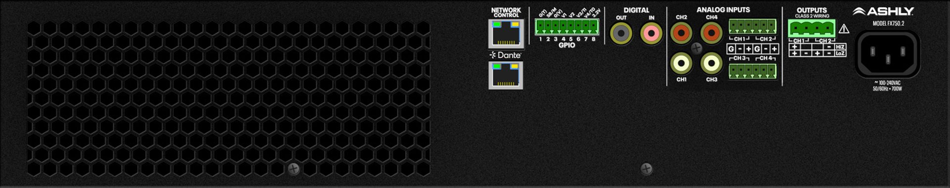 Ashly’s FX comes in two configurations: 1/2 Rack Units (RU) for fitting into those tight spaces where other high-powered amps won’t go. And for when you need the “big guns”, the 2 RU FX 500.2 & FX500.4 deliver power enough for even the largest speakers in your system (like those big subs). All FX models are lightweight for their power levels (the 2,000W FX 500.4 is only 16.5 lbs!). FX does more, in a smarter, more comprehensive package.